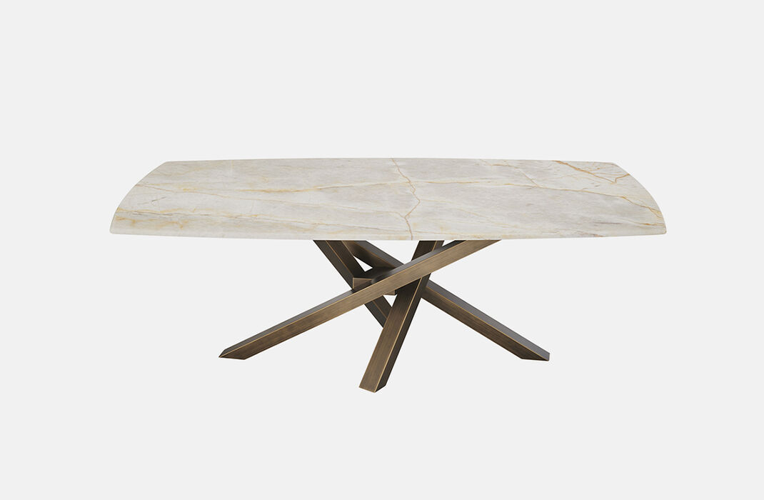 Il maestoso tavolo in quarzite Patagonia di Antolini, lavorata e rifinita da Fratelli Marmo, è un complemento d’arredo unico (KT 023), frutto della collaborazione tra Krei e Francesco Pogliaghi. Grazie a lavorazioni sperimentali e finiture a mano, valorizza materiali di estrema bellezza e storia millenaria con artigianalità e tecnologia.